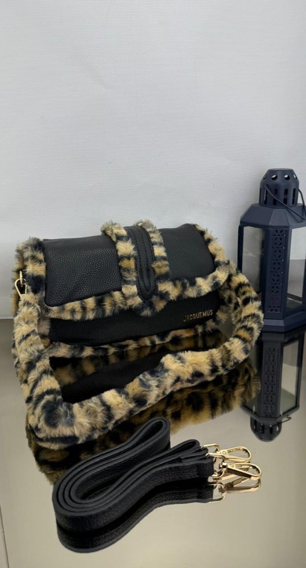 Kürk detaylı, zebra desenli siyah deri çanta, bohem ve retro sokak stiliyle uyumlu, günlük kullanım için uygun.