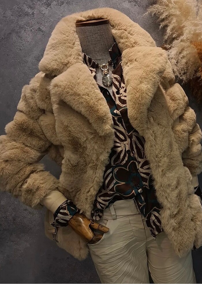 Büyük ürünüdür kürkü çok kaliteli ilk resimlerdeki gibi tabaya yakındır rengi kahve değil s m bedene uyar kruvaze şeklinde fermuarlı içi de kürklü ısıtır