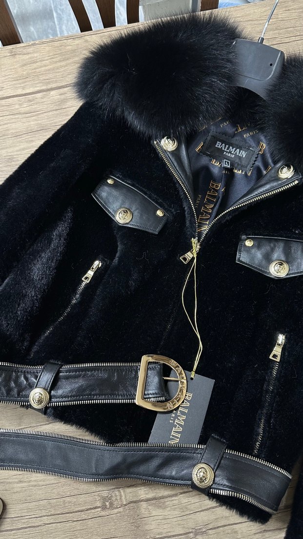 Kürk detaylı, siyah deri biker ceket. Kısa boy, kemerli, strappy kollu ve kesimli yakalı tasarımıyla şık ve trend.