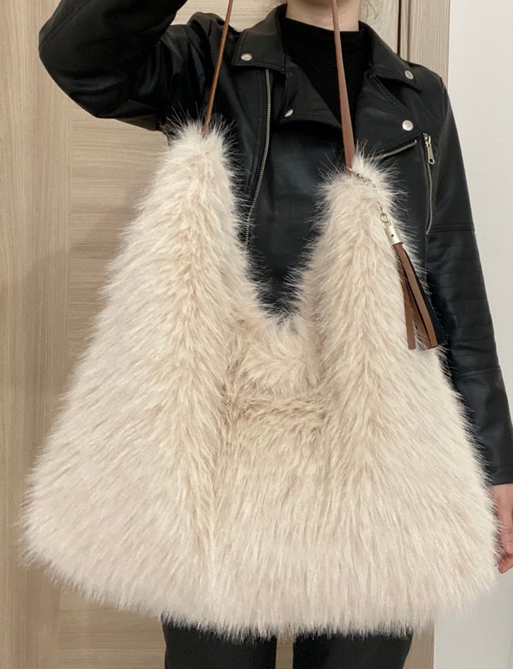 Kürk çanta içi astarlı ve mıknatıslı. Deri kulp uyumlu. Kendi üretimimdir. Hiç kullanılmadı. Ev ekonomisine destek olmak için üretip satıyorum. #kürk #çanta #bej #salaşçanta