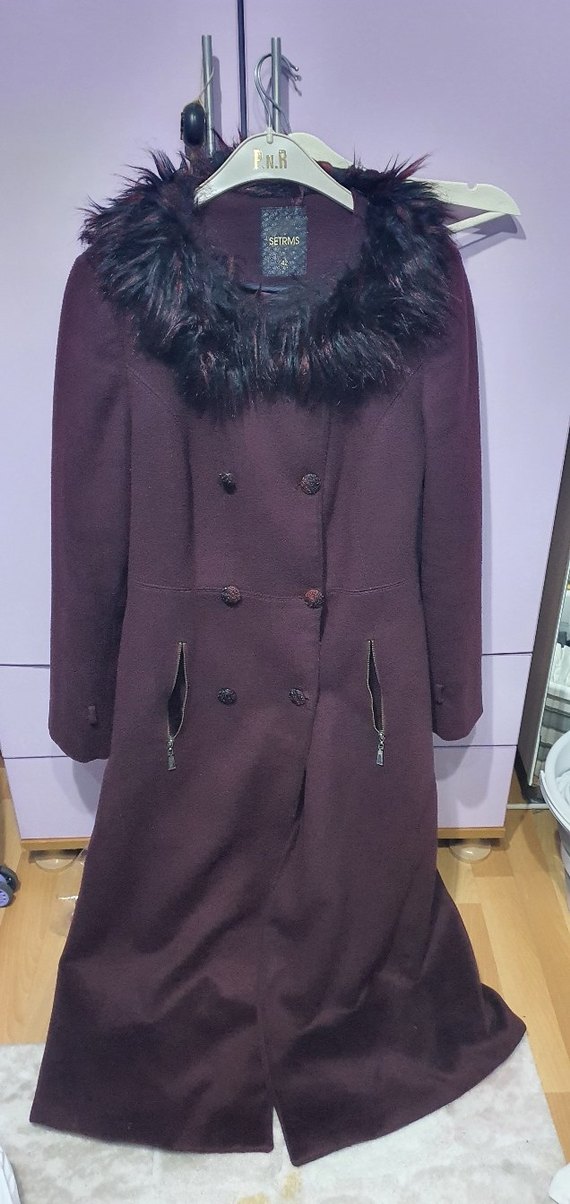 Kürk Yaka Bordo Kaban iyi durumda markası setrems kaşe kaban