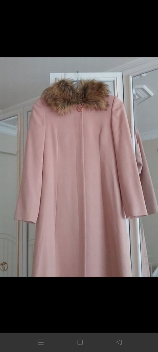Yumuşak kumaştan pembe kaban, çıkarılabilir kürk yakası ile sıcak ve şık bir görünüm sunar. nihal marka. 2 kere tek giydim uzun kaban giymek istemediğim için satıyorum. alana şimdiden hayırlı olsun