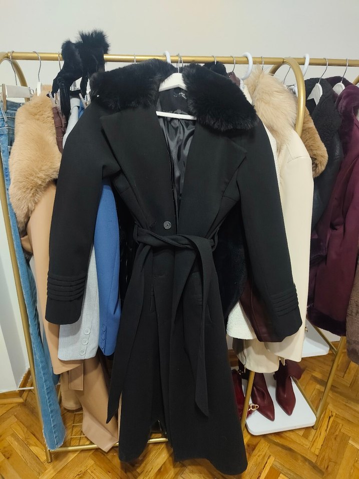 Kürklü yaka ve belden bağlamalı, uzun kollu siyah kaban. İç kısmı rahat kullanım için astarlıdır. bir iki kere ancak giyildi. aldığım fiyata göre çok uyguna koyuyorum çok kaliteli bir ürün