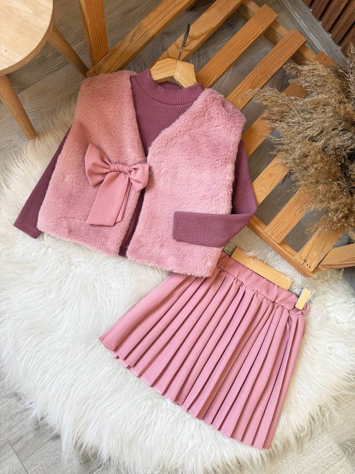 KÜRK YELEKLİ ETEKLİ 3’LÜ TAKIM 4 5 yaş7 8 yaş9 10 yaş11 12 yaş istenilen yaşta ilan açımı yaparız