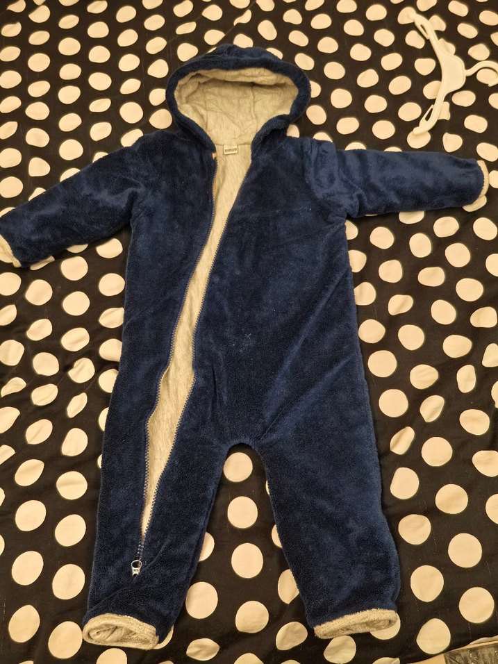 Dışı kadife gibi tüylü içi pamuklu Kumaştir. 8 ay da giyebilir. Kapüşonu vardır