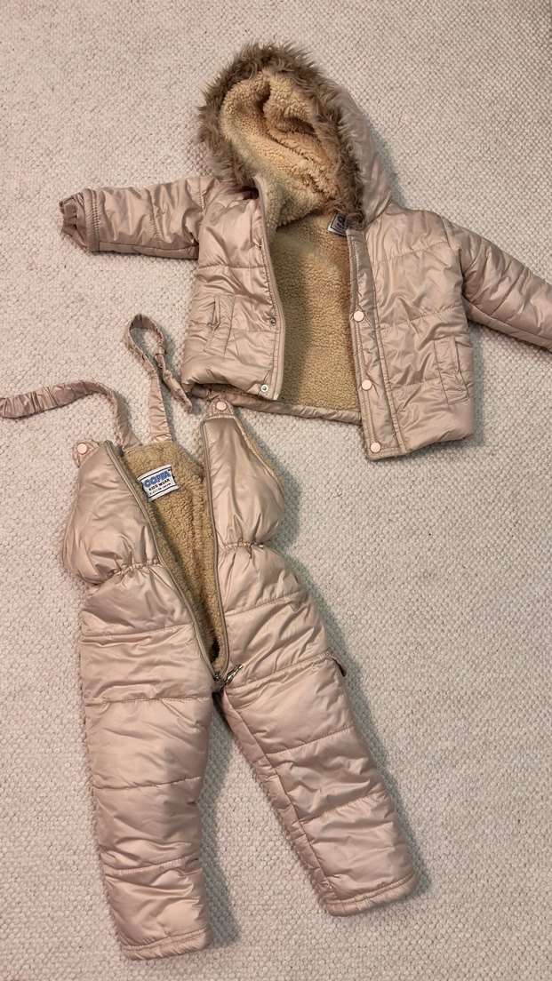Kürklü detaylı, bej renkte, kesimli yaka tipi olan desenli olmayan bebek kız kayak tulumu. İç kısmı yumuşak ve sıcak tutar. ❄️ inanılmaz kaliteli yepyeni yırtığı söküğü yok lekesi yok.  iki kere giyildi geçen sezon kara gidemediğimiz için giyilmedi. 1-4 yaş aralığına kadar oluyor . Kızım 4,5 yaşında ona bile oldu ama biraz kastı o yüzden 4 yaş üstü olmaz ( marka temsilidir) tek montlar bu fiyat bu kalitede kaçırmayın
