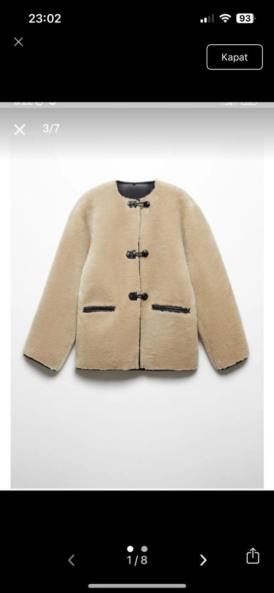 Yumuşak süet görünümlü, kürklü detaylı bej kadın ceket. Normal kesim, yakası kesik ve askılı kollu, midi boyda, rahat ve şık günlük kullanım için uygundur.