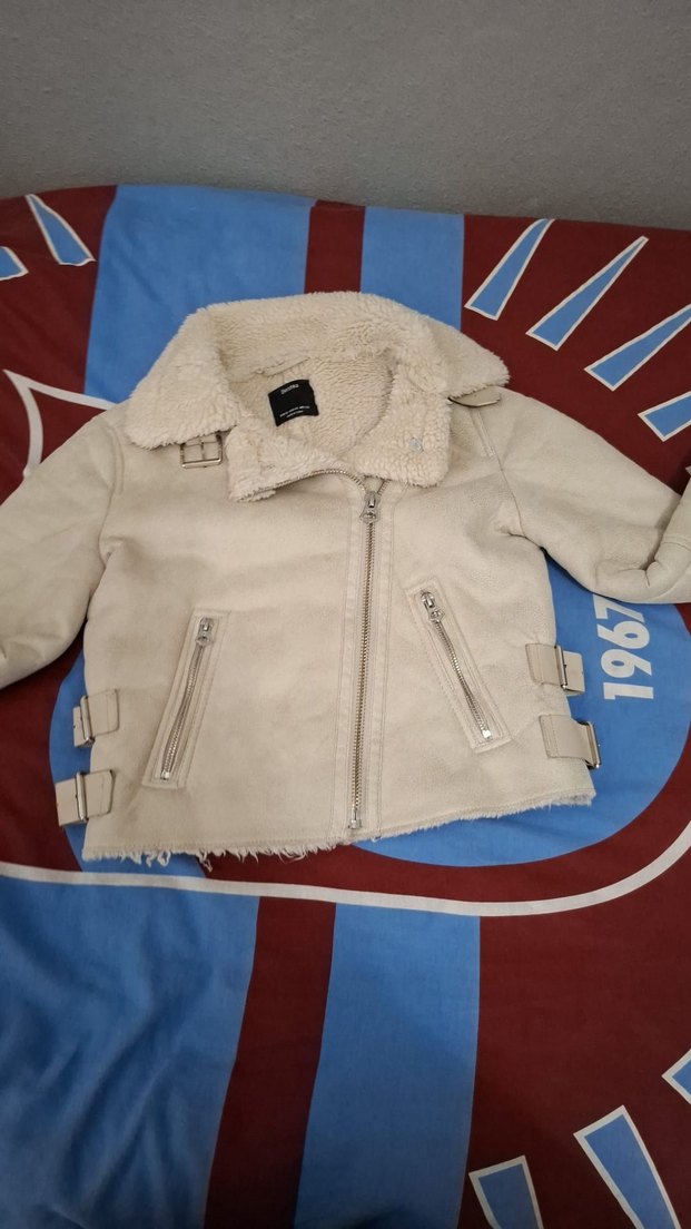 Kürklü detaylı, bej renk kısa ve fitted kesim kadın ceket. Uzun kollu, çıtçıtlı ve fermuarlı cepler bulunur. Rahat ve şık sokak stili için uygundur.