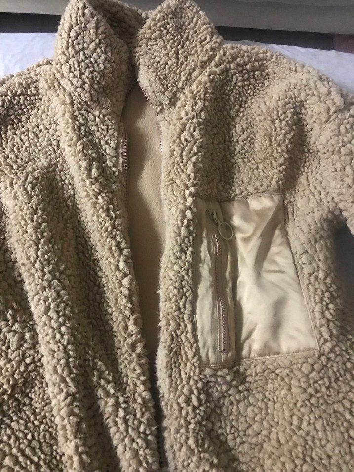 Kürklü detaylı, uzun kollu, bej kadın mont. Fitted kesim, midi boy, yaka kısmı notched lapel ve fermuarlı göğüs cebine sahip. Yumuşak ve sıcak kumaştan üretilmiştir.