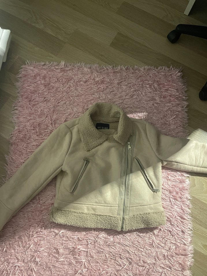 Bej renkli, kısa ve vücuda oturan bu ceket, yumuşak ve sıcak kumaş ile yakada ve etek ucunda kürk detaylarına sahiptir. Notlu yakalı ve uzun kolludur, günlük rahat sokak stili için uygundur.
