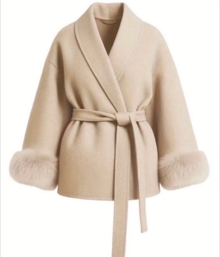 Kürklü Bej Midi Kadın Kaban