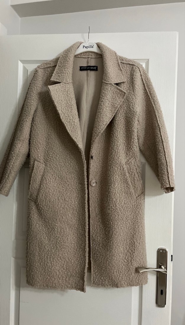 Kürklü detaylara sahip, bej renk midi uzunlukta kadın kabanı. Yumuşak yün kumaştan, normal kesim ve uzun kolludur. Ofis ve günlük kullanıma uygundur. Marka temsilidir 2 3 kez anca giyildi