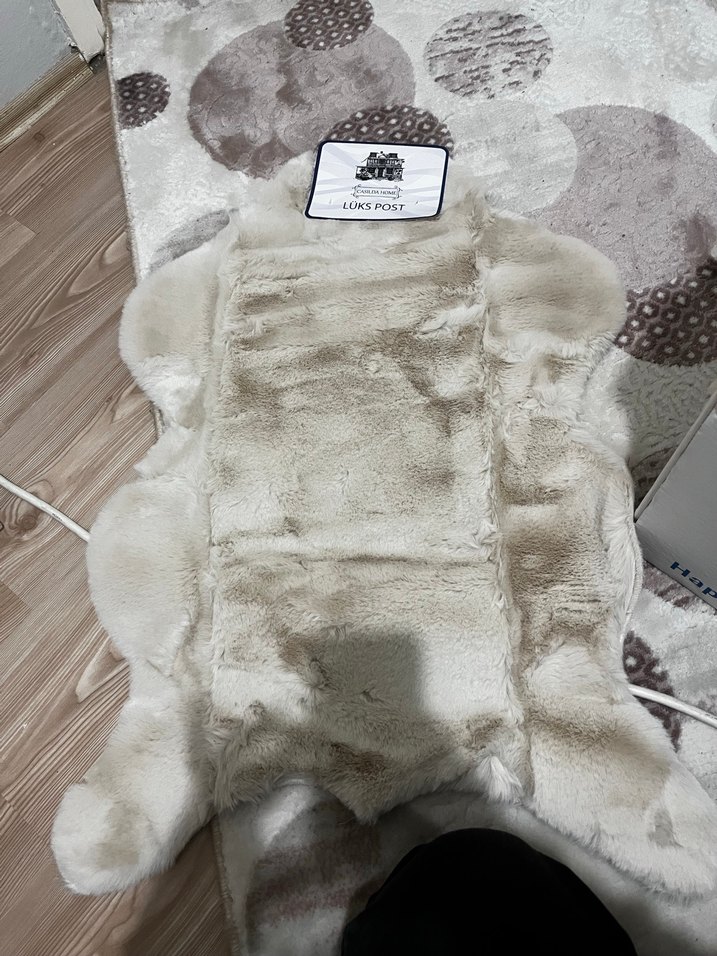 Yumuşak sentetik kumaştan yapılmış bej renkli sahte kürk.