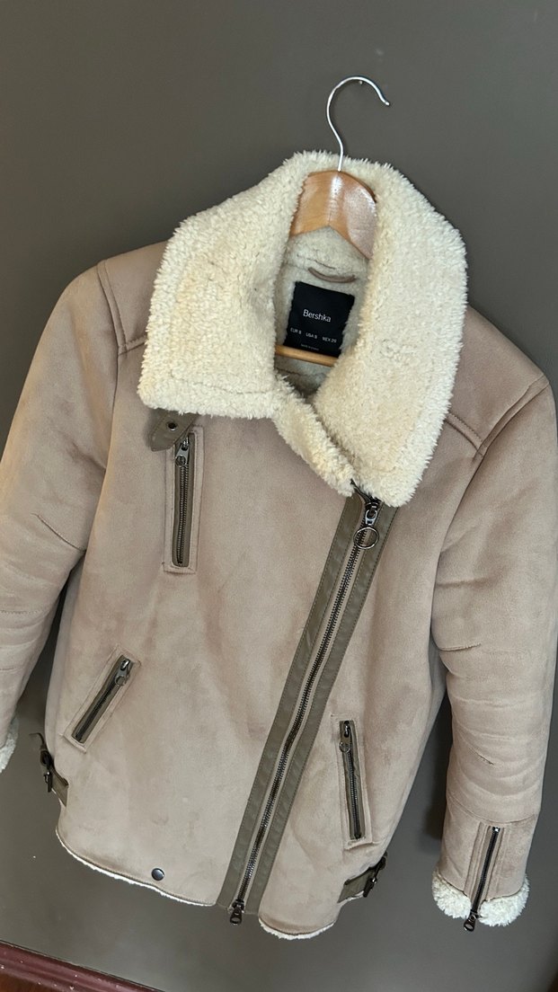 Kürklü Bej Süet Biker Mont