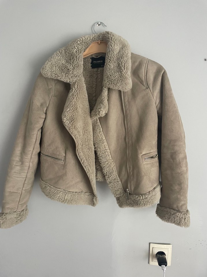 Bej süet kumaştan üretilmiş, kürk detaylı, uzun kollu ve kesimli kadın ceket. Yaka, manşet ve etek kısmında yumuşak kürk bulunur.