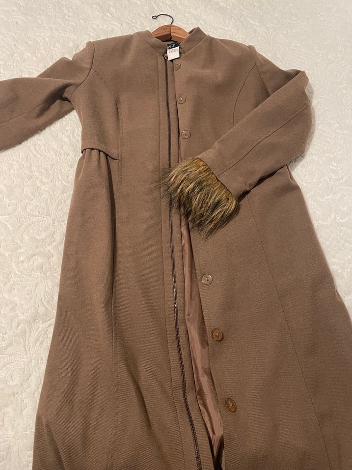 Bej renkte, uzun kollu ve kürklü manşet detaylarına sahiptir. Yakası kesik ve normal kesimlidir, ofis kullanımı için uygundur. Rahat ve bohem tarzda, desensiz modeldir.