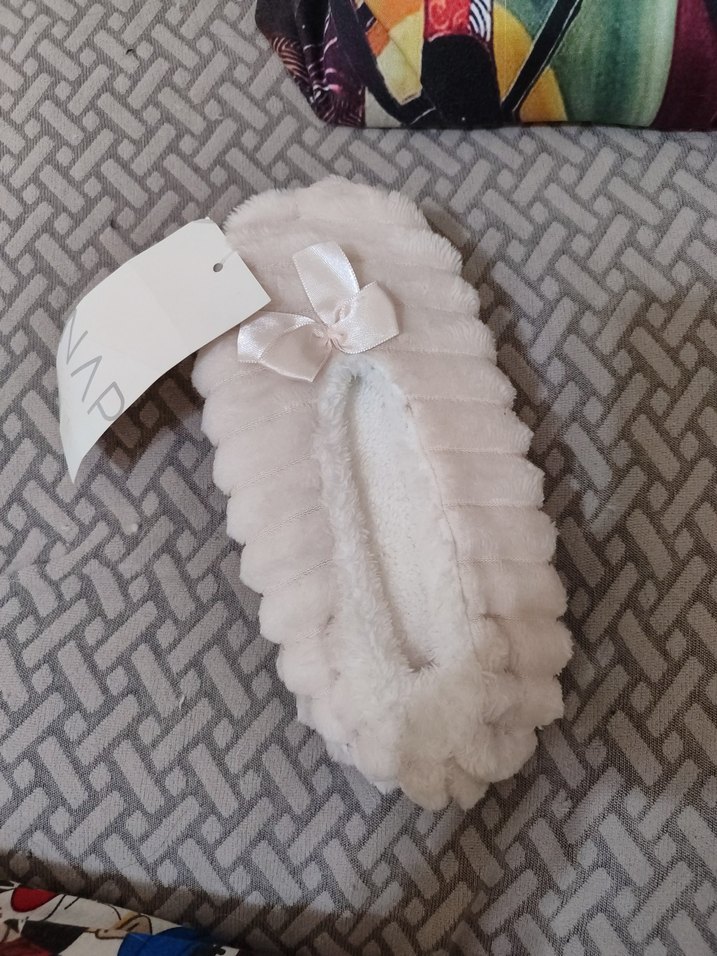 Kadın ev babeti, yumuşak kürk detaylıdır. Rahat, düz ve desensiz ekru renktedir. 38/39 numara, ekru renk.
