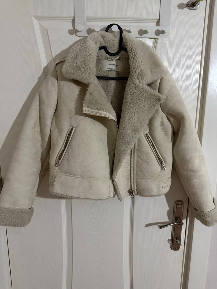Kürklü Beyaz Midi Kadın Mont kaban Stradivarius