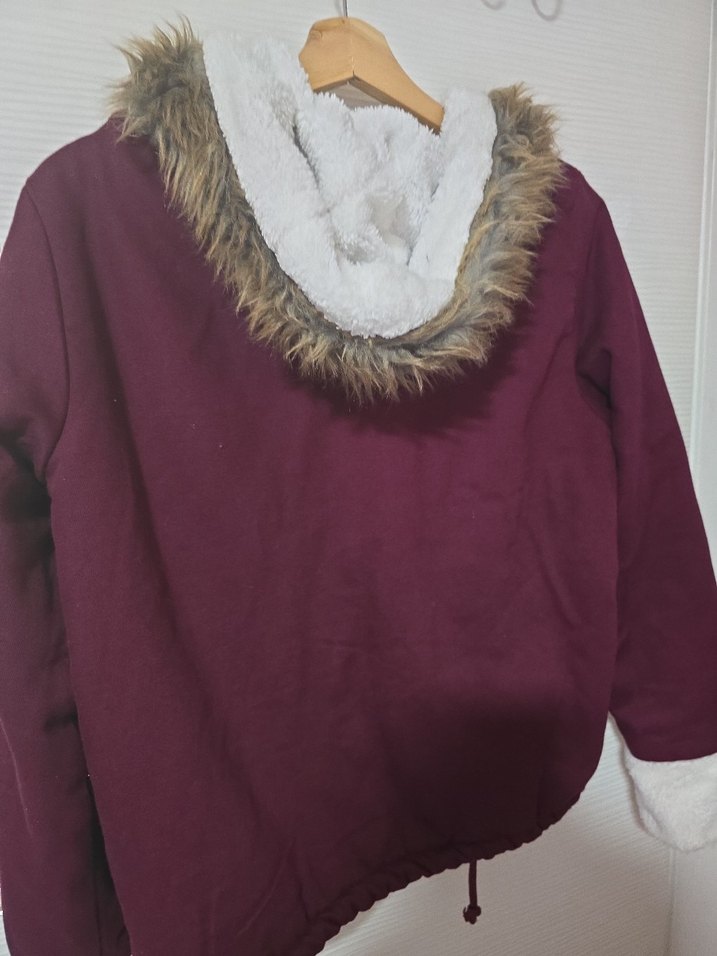 Kürklü detaylı yakası ve yumuşak fleece astarı olan bordo kadın kışlık mont. Uzun kollu, bol kesim ve midi boyda. Parlak rengiyle trend sokak stili sunar. ❄️