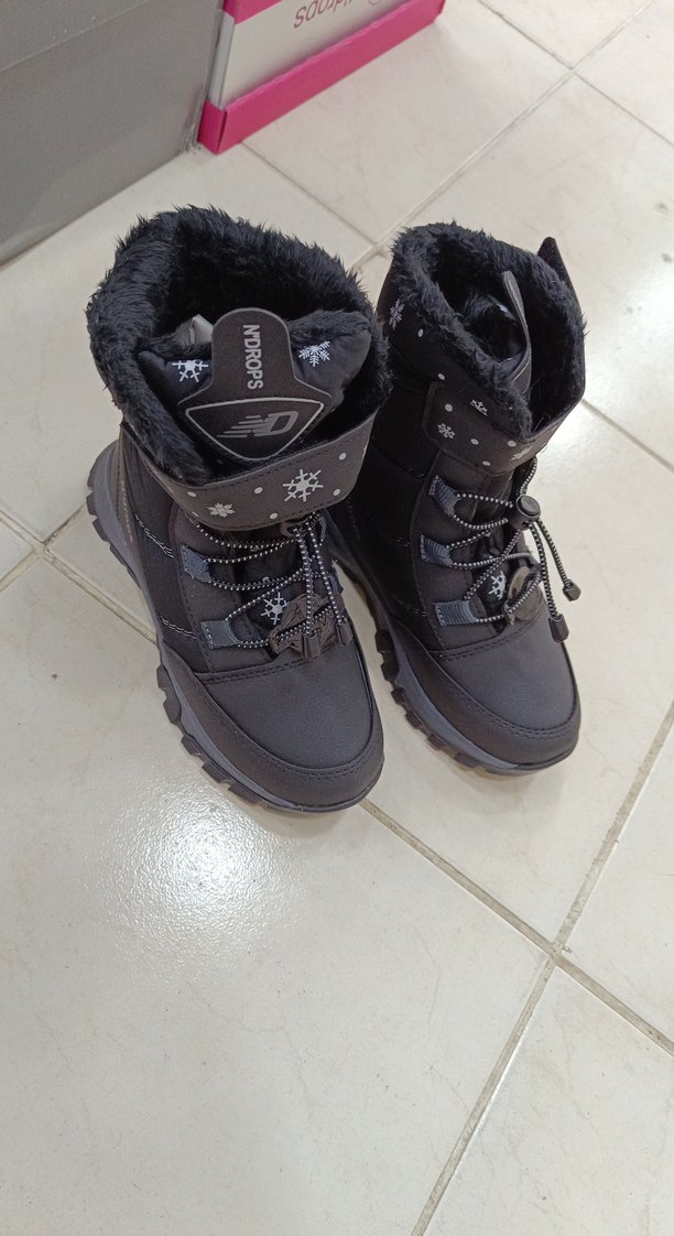 Gri desenli, kürklü ve kauçuk tabanlı çocuk botları, sokak stili için uygundur.