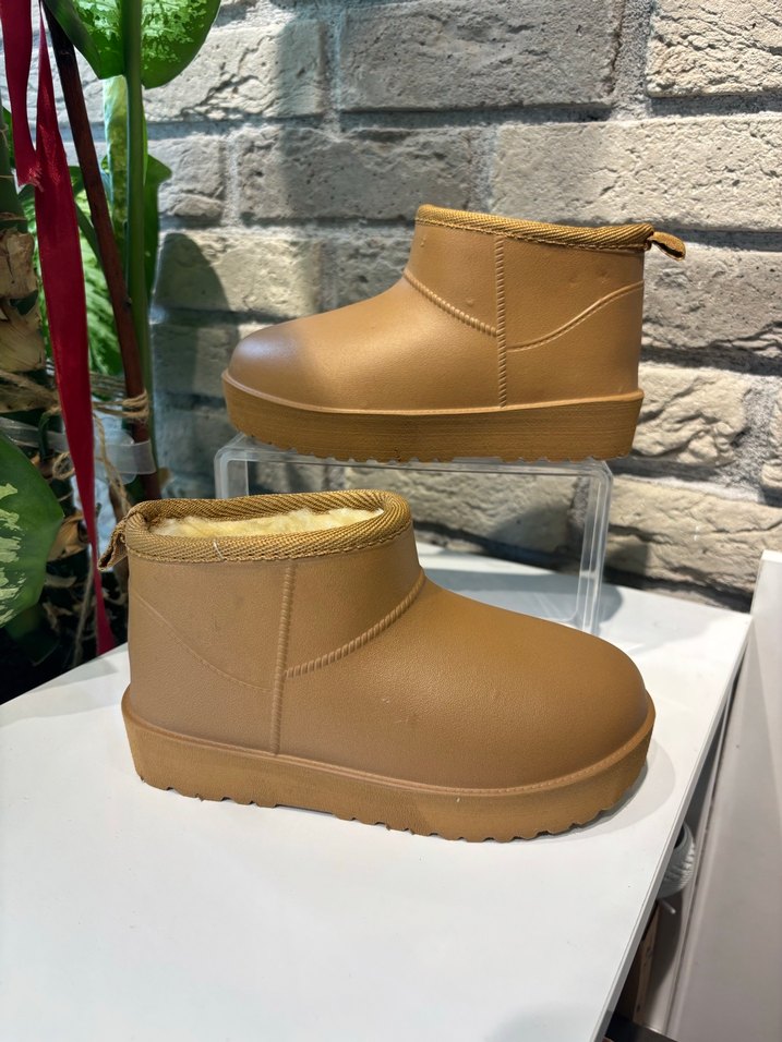 Bej renkte, kürklü detaylı kadın botları dolgu topuklu ve dayanıklı kauçuk malzemeden üretilmiştir. Günlük sokak stiline uygun rahat bir seçenektir.