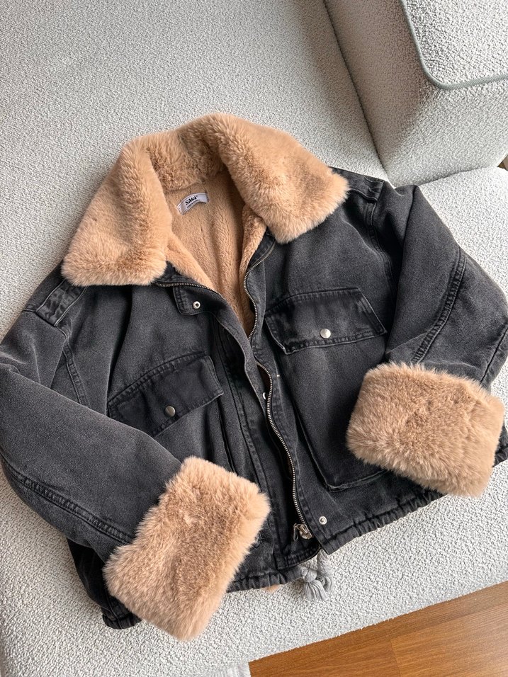 Kürklü Denim Mont
