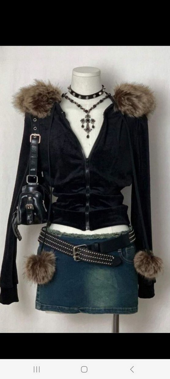 Siyah süet kumaştan, yakalı ve kürklü detaylı, gotik tarzda, normal uzunlukta ve dar kesim midi ceket.