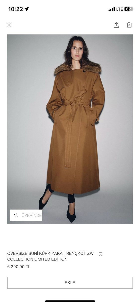 Kürklü Detaylı Uzun Bej Kadın Trençkot S M L