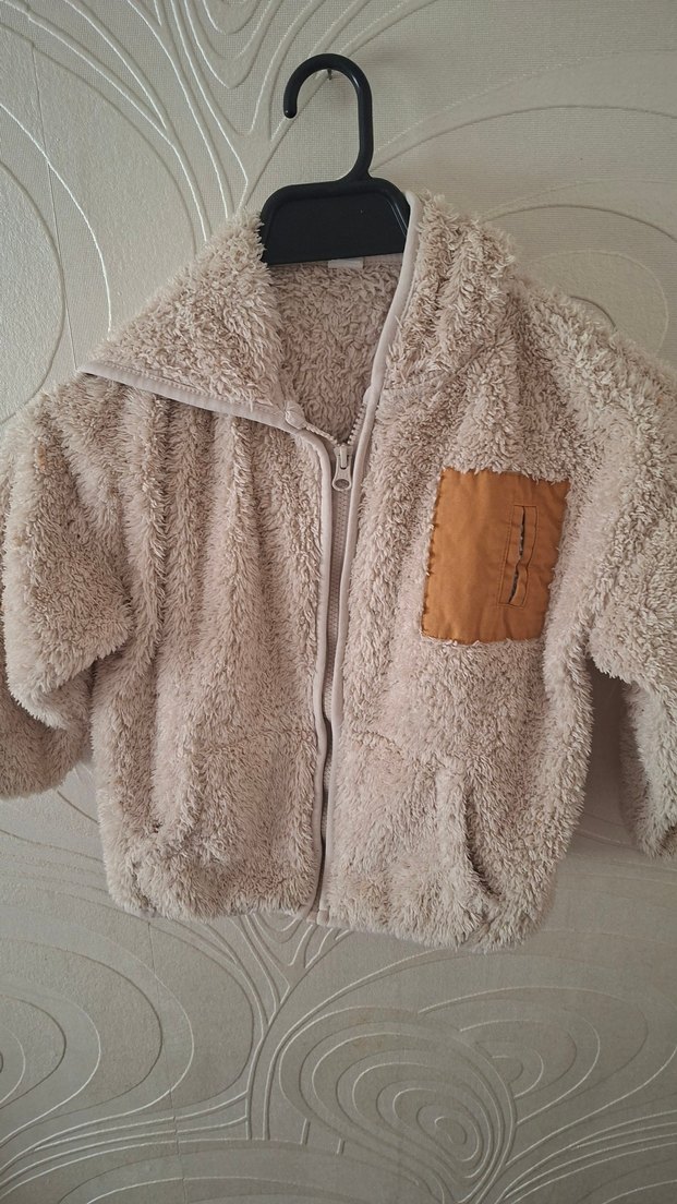 Geniş kesim, kesik yakalı erkek çocuk montu, yumuşak ve sıcak kumaştan. Kürklü detaylı, kahverengi cepli, sokak stiline uygun 4 5 6 uygundur