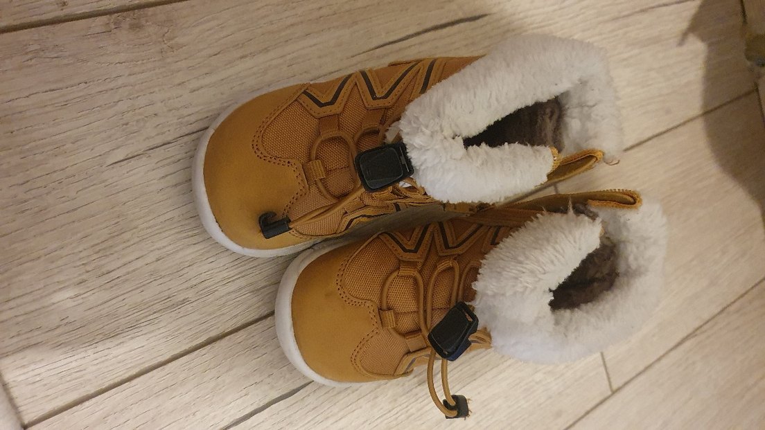 Kahverengi, parlak görünümlü erkek çocuk botları, yumuşak kürklü iç detaylarıyla sokak modasına uygun.