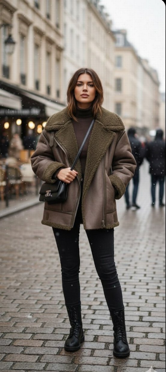 Gri deri ceket, kürk detaylı ve kesik yakalıdır. Midi boylu ve regular fit yapısıyla ofis için uygun, rahat bir tasarımdır.