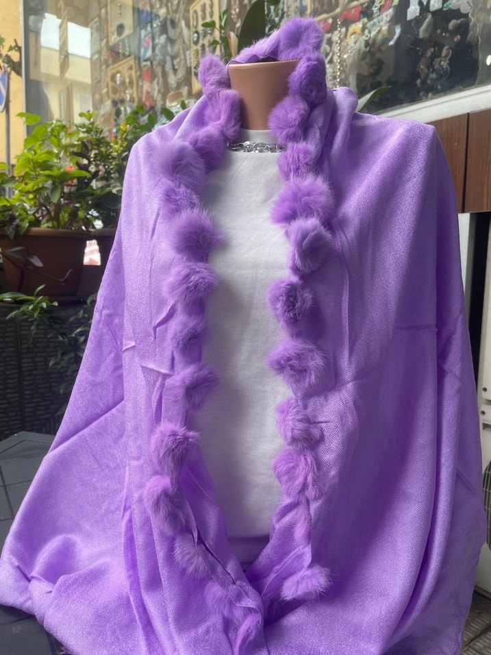 Mor renkte, kenarları kürk detaylı, yumuşak ve sıcak kumaştan kadın panço. Rahat ve bohem tarzda, pastel tonlarıyla retro goth havası veriyor.