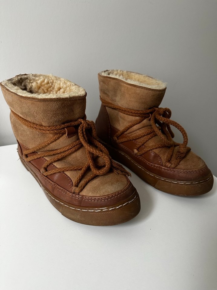 Kürklü astarlı, bağcıklı kahverengi süet kadın botlar, dolgu topuklu ve rahat bohem tarzda. Dış mekan kullanımı için uygundur. Cool moon marka