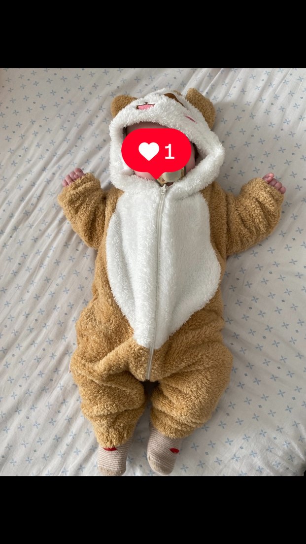 Kürklü detaylı, kapüşonlu ayı figürlü, yumuşak ve sıcak kahverengi bebek tulumu.