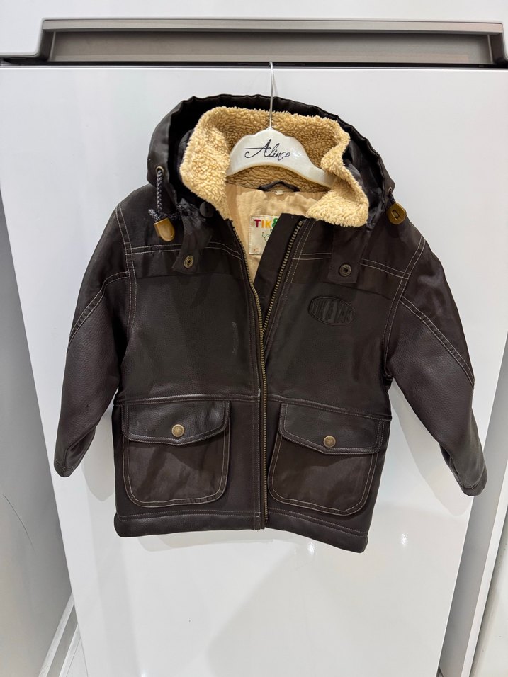 Kürklü Kahverengi Deri Erkek Çocuk Mont