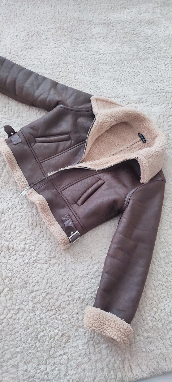 Kürklü detaylı, kahverengi deri kadın ceket. Notlu yakalı, askılı kollu ve midi boyda, rahat ve desensiz tasarıma sahip. Günlük kullanım için uygun. robin marka kullanılmadı bedeni 38 yumuşacık yapılı harika crop ceket