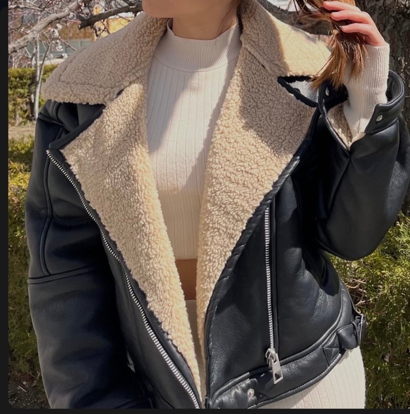 Kahverengi deri, kürklü astarlı, yakalı ve askılı kollu, normal midi boyda, sokak stiline uygun kadın ceket.
