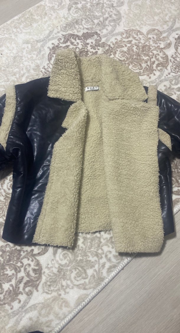 Kahverengi deri, kısa boy, uzun kollu ve kürklü detaylı bu ceket, rahat kesimiyle günlük sokak stiline uygundur.