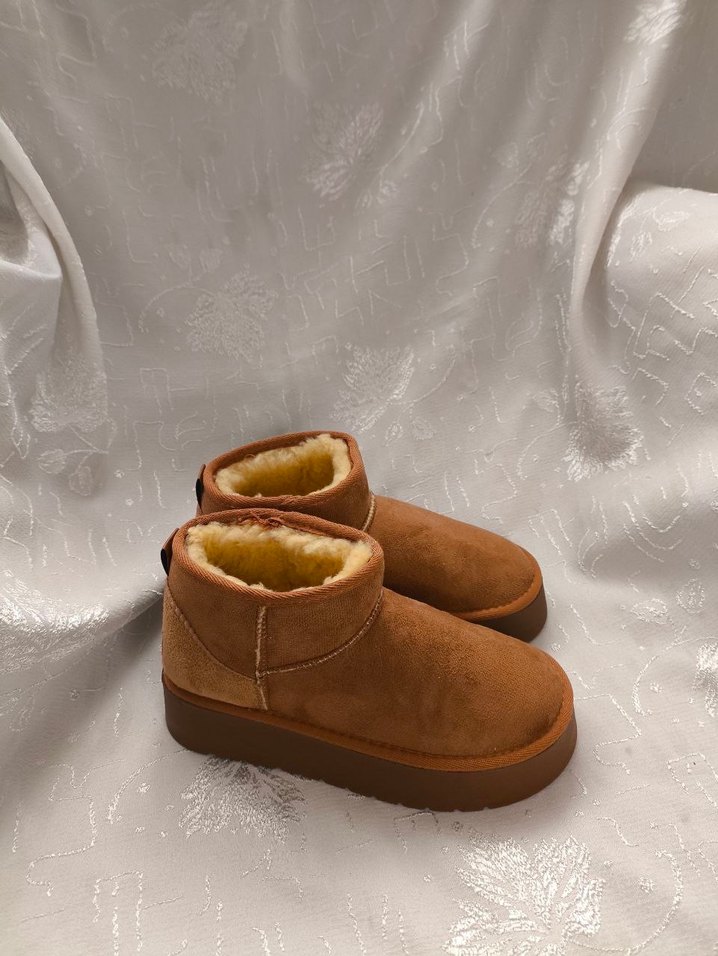 Kahverengi süet kadın botlar, dolgu topuk ve yumuşak kürk detayına sahip, günlük kullanım için rahat ve sıcak bir seçenek sunar. Desensiz ve trend casual tarzda.