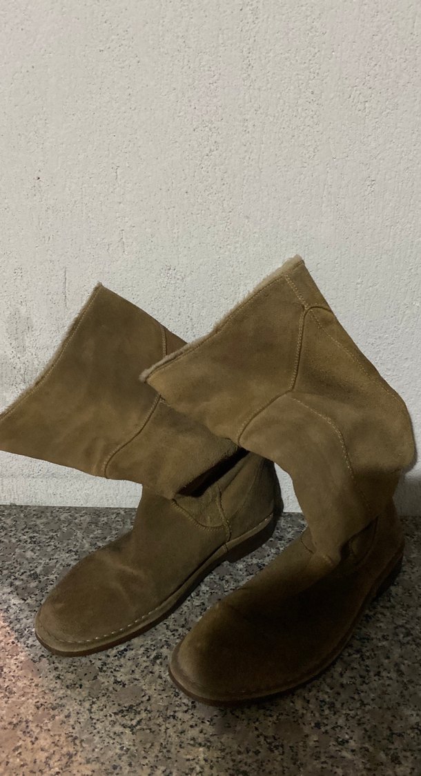 Kahverengi süet kadın botlar, dolgu topuklu ve kürklü detaylıdır. Rahat, desensiz ve gündelik kullanıma uygundur.