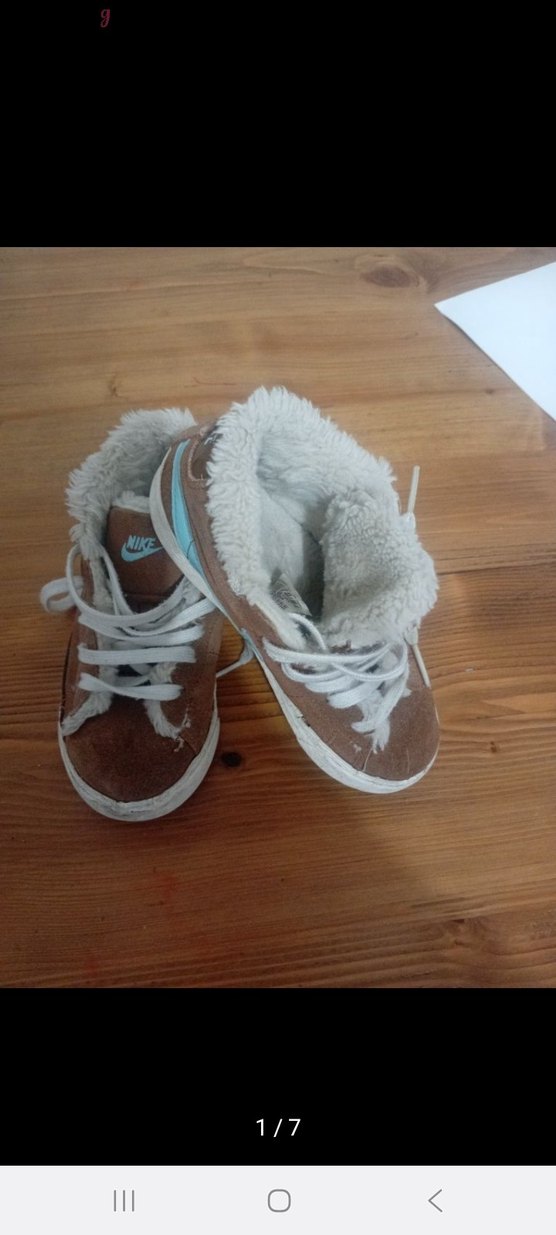 Kahverengi süet dış yüzeye ve gri detaylara sahip, içi kürklü çocuk spor ayakkabısı, trend sokak stili ve sıcaklık sunar.