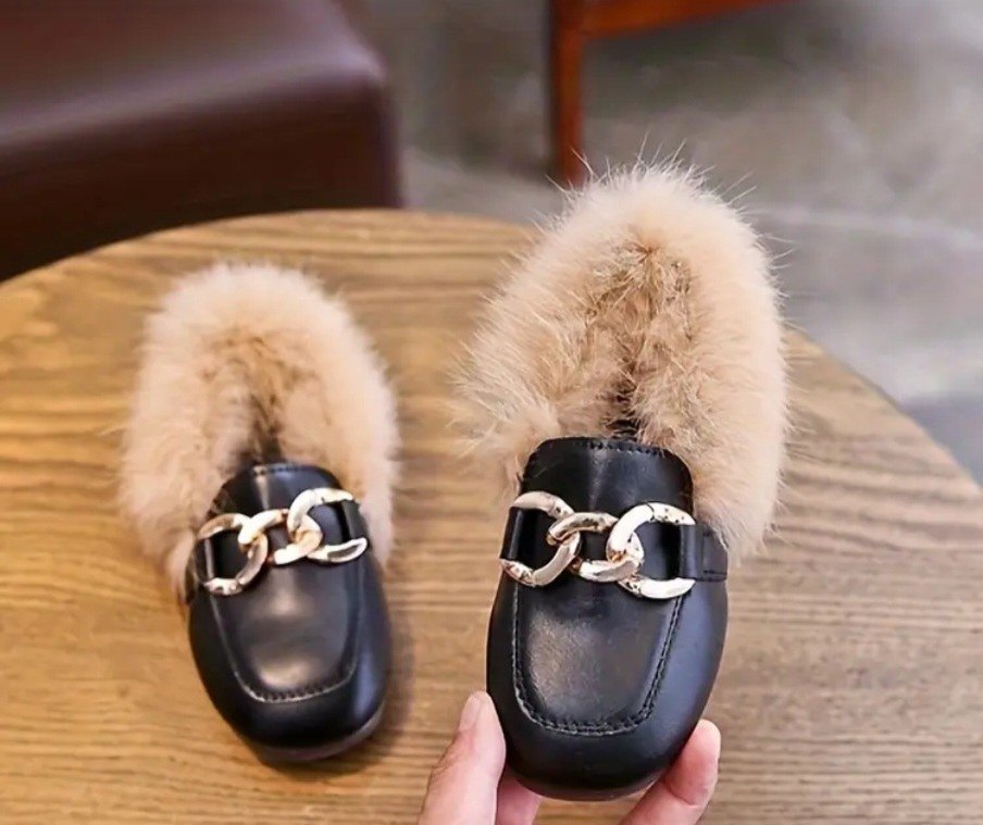 Kürklü Kahverengi ve siyah Deri ayakkabı çocuk