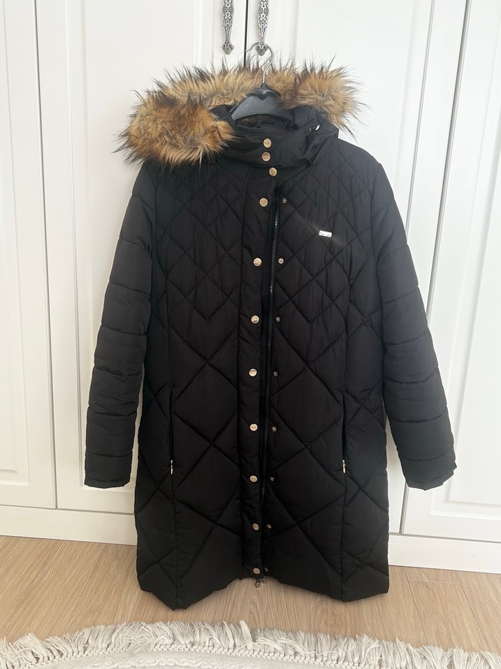 Kürklü kapşonlu Siyah Kadın Kışlık Mont 44 beden uspa