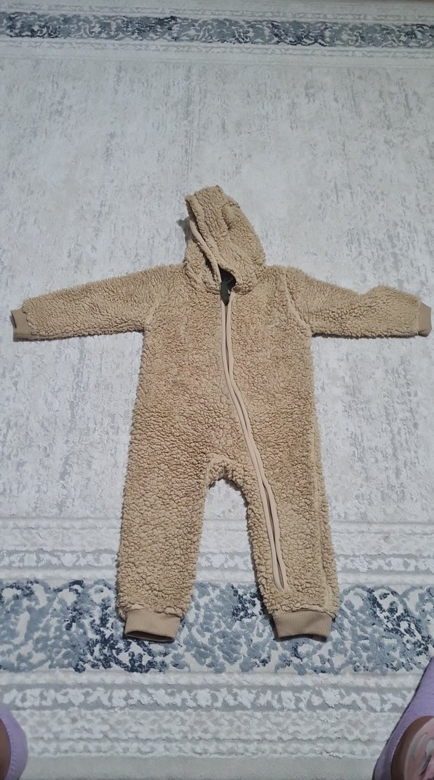 Kürklü detaylı, kapüşonlu ve yumuşak dokulu bebek tulumu, kahverengi renkte ve desen içermeyen sokak stili ☁️ Lekesiz temizdir