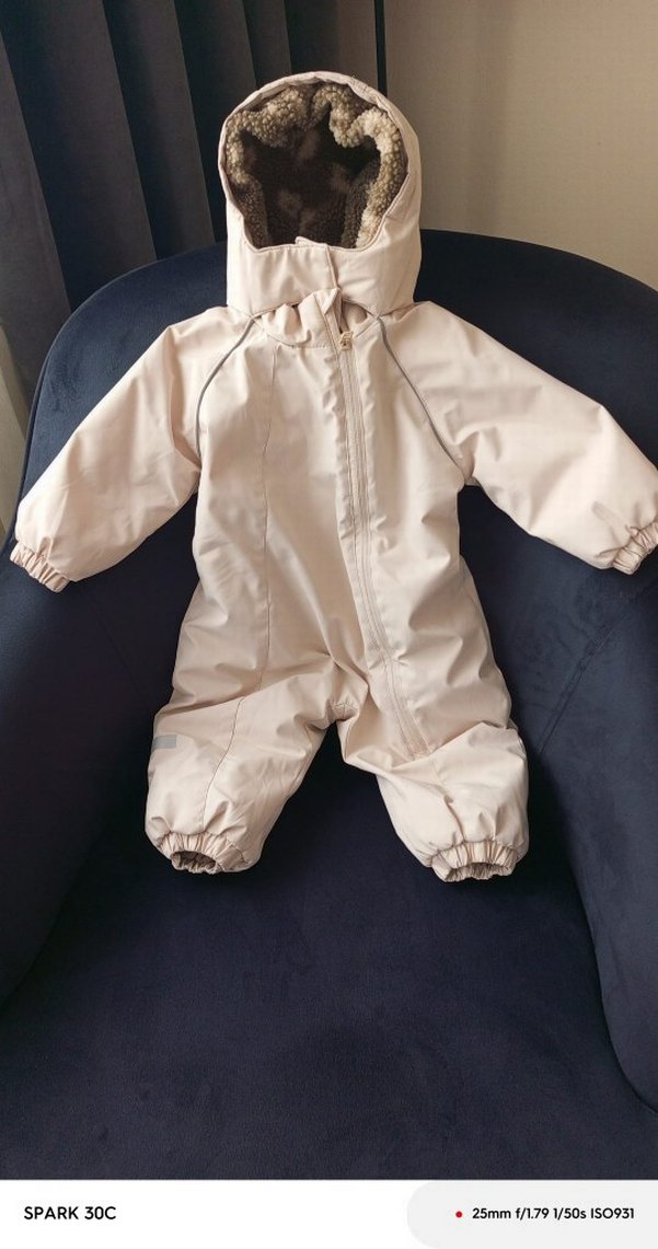 Bej renkli, kürklü kapüşonlu ve kesik yaka detaylı bebek tulumu. Yumuşak ve sıcak kumaş, lastikli manşetlerle rahat kullanım sağlar. Pastel tonlarda desen içermez. ❄️ SON FİYAT teklif kabul etmiyorum 2 yaşına kadar uygun