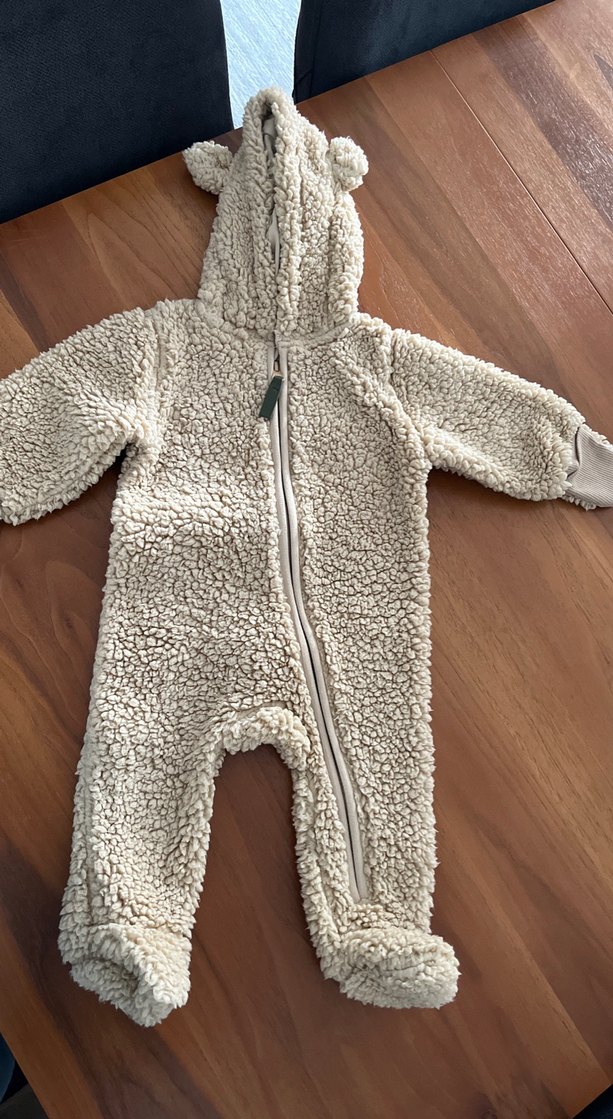 Kulaklı kapüşon ve kürk detaylı, yumuşak ve sıcak bebek tulumu. Elleri eldıvenlı kapanabılıyo. Fermuar kapanışı ile kolay kullanım sağlar. Kullanılmamıştır