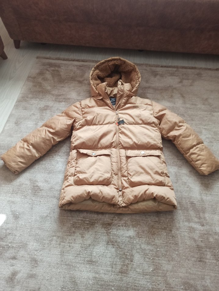 Bej renkli, kürklü detaylı, uzun kollu, kapüşonlu kadın kış montu. Fitted kesim ve midi boyda, sıcak tutan yumuşak kumaştan, günlük kullanıma uygun. ❄️