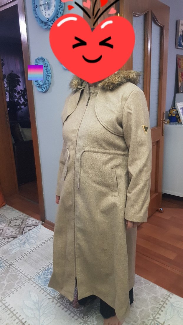 Kürklü kapüşonlu, bej midi uzunlukta kadın kaban. Yumuşak ve sıcak kumaştan, uzun kollu ve regular fit. Sokak stili ve günlük kullanım için uygun.