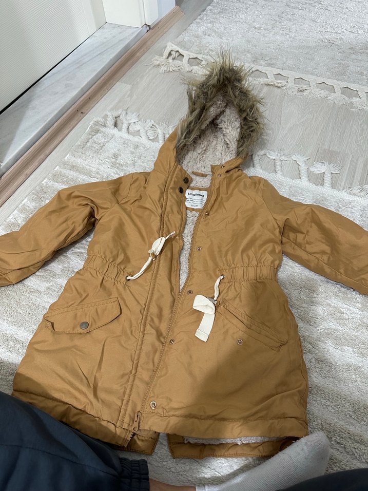Bej midi uzunlukta, kürklü kapüşonlu, kızımın çok montu oldugundan cok az giyildi