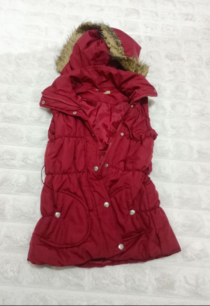 Bordo renkli, kürklü kapüşonlu, kolsuz ve fitted kesim kadın yelek. Yumuşak ve sıcak kumaştan, ön ceplidir, gündelik sokak stili için uygundur.